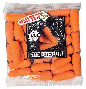 בשקית, מאוד מתוקים וטעימים ובהחלט מהווים סוג של "חטיף דל-קלוריות". הם גדלים בשדות הגזר של קיבוץ שלוחות באזור הכרמל – אבל לא כמו שהם נראים. ניסיון קודם, של לפני מספר שנים, הוכיח למגדלים כי הגיזרונים הקטנים מועדים לפגעי חקלאות ובמקומם – בא הרעיון לגדל גזרים כתומים, חזקים ואיכותיים ובעזרת מכשור ייעודי לגלף מהם גיזרונים קטנים, שנארזים בשקיות למכירה. אין צורך לשטוף, לקלף או לחתוך – רק לתת ביס ולנשנש. 100% טריים, טעימים, בריאים וגם דלי קלוריות ומפנקים. נכיר אותם: חטיפוני גזר – קטנים, שובבים וטעימים בצורת גזר קלאסי, מותג שמשדר טריות, בריאות, משפחתיות וישראליות. רק 38 קלוריות ל- 100 גרם; מקלוני גזר – שטופים, חתוכים ומוכנים לאכילה. רק 34 קלוריות ל- 100 גרם; מקלוני גזר צבעוניים – שטופים, חתוכים ומוכנים לאכילה, בשלל צבעים המכילים מרכיבים תזונתיים ייחודיים. רק 34 קלוריות ל- 100 גרם.