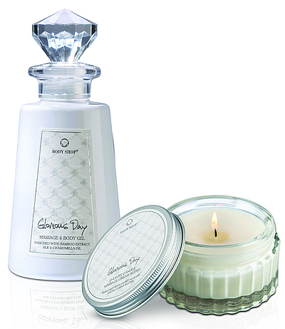 עוד חדשים בכ-50 חנויות רשת "Body Shop", לטיפול ופינוק מהטבע, לנשים, גברים ילדות ותינוקות, רשת המשלבת בין הגישה הטבעית-מסורתית לגישה המדעית-מודרנית – הם מתנות ל"חג האוהבים" – "וולנטיין דיי". ג'ל מסאג' לעיסוי מפנק ונר מסאג', נוספו לסדרת ה- "Glorious Day" – המעוצבת בסגנון רומנטי ועדין בעלת ניחוח יוקרתי: שילוב של מאסק, ונילה ופרחים לבנים.