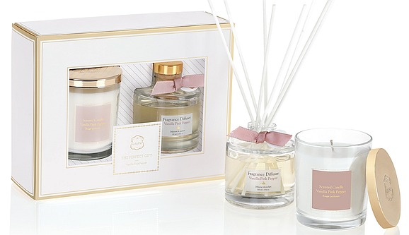 מארז בניחוח פרוזן פיר/ונילה פינק פפר: כולל נר קלאסי בניחוח הנבחר, דיפיוזר וקופסא מעוצבת. המחיר: 89.90 שקל (במקום 159.70 שקל).