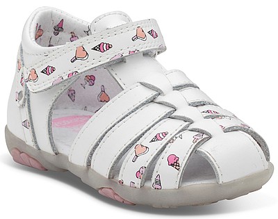 לבנות – סנדלים בהשראת ממתקים וצעצועים. ריבוי של דפוסי סוכריות, פפיונים הדפסים בצבעוניות קיצית של ורוד, סגול, פוקסיה ולבן.