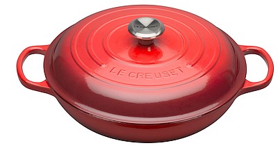 הסירים, גם המחבתות של LE CREUSET עשויות ברזל יצוק בעבודת-יד ויש גם קולקציית כלי בישול העשויים פלדת אל-חלד, קולקציית כלי בישול ואפייה נון-סטיק, כלי אבן וקולקציית אביזרים משלימים, כגון כוסות יין, ספלים, קומקומים, סכינים ועוד. מבחינתי, הכי משכו את העין הקומקומים ה"מצפצפים" להרתחת מים על אש והם בעלי ציפוי אמייל קשיח ומוצעים בשלל צבעים. כל כלי הבישול של הרשת מתאימים לכל מקורות החימום: גז, אינדוקציה, כיריים חשמליים וכמובן לתנור.
