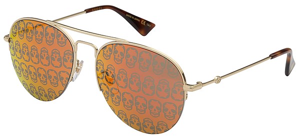 1) "משקפי טייסים" במסגרת לא שגרתית – משקפי טייסים בחצי מסגרת, בעיצוב חדשני עם עדשות מדורגות. שימוש מעניין באלמנט הצבעוניות ירוק-אדום של "גוצ'י" בקצוות זרועות המשקפיים, כאשר סיומת אחת ירוקה וסיומת אחת אדומה. בקצה הזרועות דמות הדבורה האהובה כ"כ על המעצב (דגם 17GU010707).
