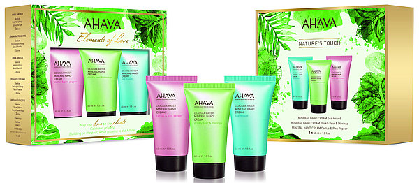 האיכות הגבוהה והלא מתפשרת של מוצריה, הקנו ל-"AHAVA" שם עולמי, ובקרב הישראלים, "AHAVA" היא המתנה המבוקשת ביותר לנוסעים לחו"ל. מוצרי AHAVA"" נמכרים בלמעלה מ- 30 מדינות, ברשתות מובילות ברחבי העולם ובחנויות קונספט ייחודיות בבודפשט, ברלין, סינגפור ועוד. ברור שהגיע הזמן שגם אנחנו נהנה מהם ונבחר לעצמנו לפחות אחד מארבעת המארזים שהמותג מציע לראש השנה. בכל מארז פריטים מפנקים לטיפוח עור הפנים והגוף עם הרכיבים המובילים של המותג, ביניהם מי ים המלח הקסומים, צמחי המדבר השורדים, הבוץ העשיר והמרגיע ומלח מים-המלח. נכיר אותם: