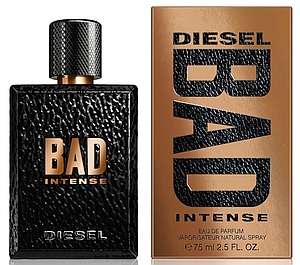 הבושם החדש לגבר של "דיזל", בבקבוק שנראותו מפיצה אווירה של גבריות קשוחה. עיצוב הבקבוק שואב השראה ישירה מז'קט האופנוענים האיקוני – ז'קט הפרפקטו. הלוגו"Bad Intense" חקוק בנחושת חמה על הבקבוק. נקי וגברי הוא דפוס הרשת המתכתי שעל הפקק, המזכיר אופנועי דוקאטי. "באד אינטנס" הוא גרסה חמימה ונעימה של בושם "Bad" המקורי של של "דיזל" וניחוחו מופק משילוב בוער של תבלינים חמים ועצים שרופים. תווים עליונים חריפים של ברגמוט, הל ופלפל שחור, בתווים המרכזיים קוקטיל חם של זעפרן, אגוז מוסקט וקינמון ובתווים הבסיסיים חושניות של מקל וניל, בנזואין ולבנדום.
