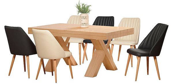 פינות אוכל – בעיצוב אולטרא-מודרני בשילוב מפתיע של עץ וברזל בצבעוניות חדה, המשלבת אלמנטים של מתכת בצבע אפור בהיר עם פלטות white wash.