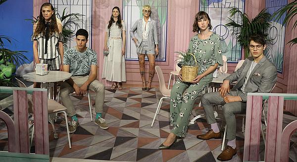 Tropiczen – צבע הזית מוביל את הקולקציה בשכבות של גוונים שונים בכל פריטי הלבוש. צבע הזית, שהשתרש בארון הגברי בשנים האחרונות, מתנער מהקשרים מיליטריסטיים וחובר לפלטה עשירה של ירוקים נוספים, בהם ירוק-בקבוק, ירוק-יער וירוק-מנטה לצד נייבי וורוד לכדי נרטיב קייצי טרופי. חולצות טי עם דפוסי פרחים, דקלים, עלי במבוק ובננה ומגוון מכנסי צ'ינו עשויים סריגים במראה אריג.
