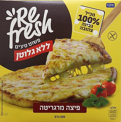 בשורה בשוק המוצרים נטולי גלוטן – פיצה איכותית המכילה 100% גבינה צהובה, רוטב עגבניות, סיבים תזונתיים וסידן – מה שאומר דגש רב על איכות המוצר, דרך שימוש בחומרי גלם איכותיים ומקסימום יתרונות תזונתיים. פיצה מרגריטה זו מוכנה לשימוש ישירות מהמקפיא לתנור בהכנה מהירה של כ- 10 דקות בלבד. הפיתוח האחרון של חברת "Refresh" (לשעבר: "נטורל קייקס"), הפועלת משנת 2003 ונחשבת למובילה בתחום המוצרים ללא גלוטן. מפעל החברה שוכן בשדות נגב שליד נתיבות ומעסיק כ-50 עובדים. החברה פועלת מתוך מטרה להנגיש את המוצרים ללא גלוטן לכלל האוכלוסייה וזאת באמצעות מחירים הגונים.