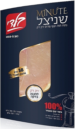 "Minute שניצל" הנו מוצר שניצל פרוס דק דק להכנה מהירה בדקה! מוגש באריזה מיוחדת, השומרת על הטריות. המוצר דל קלוריות ועתיר
