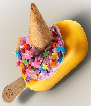 9) יוניקורן – "מגנום" וניל בציפוי שוקולד לבן צהוב בתוספת קצפת סגולה, כוכבי סוכר צבעוניים ומיני וופל.