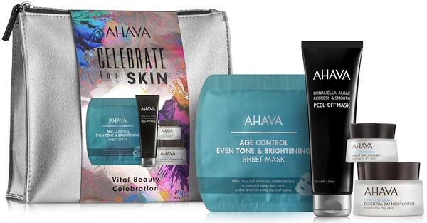 Vital Beauty Celebration (4 – הברכה: Celebrate your skin and your inner beauty מצורפת למארז מפנק לטיפוח הפנים, המכיל את המוצרים הכי מבוקשים למראה עור בהיר, אחיד וקורן. מארז של תיק רחצה כסוף ומעוצב ובו קרם יום לעור רגיל עד יבש 50 מ"ל, קרם לילה מזין 15 מ"ל, מסכה מתקלפת על בסיס אצת דונליאלה בגודל מלא 125 מ"ל, ומסכת בד אייג' קונטרול לגוון עור אחיד ובהיר 17 גר'. המחיר: 249 שקל.