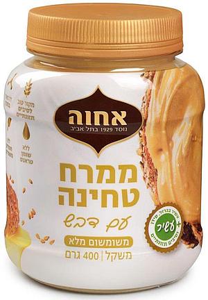 ראשון מסוגו של דבש ביחד עם טחינה מלאה והוא מצטרף סדרת שלושה ממרחי הטחינה של "אחוה", היצרנית המובילה בישראל של מוצרי חלוה, טחינה ודברי מאפה: ממרח טחינה עם שוקולד, ממרח טחינה עם סילאן וממרח טחינה עם שוקולד ללא סוכר. כפי שכבר ציינתי, השילוב של טחינה מלאה עם דבש – הוא בפרוש הטעם הטבעי שלי וביחד עם זאת, חייבת להודות שזהו רעיון מוצלח ביותר עבור אלה שאינם אוהבים טחינה גולמית מלאה. התוספת של דבש מנגישה להם את הטעם ועל הדרך הם זוכים בשפע של ערכים תזונתיים של הטחינה הגולמית. לכך אוסיף את איכויות הדבש, הידוע מזה אלפי שנים כמזון בריאות, הנחשב ל"Superfood", בעל ערכים גבוהים ואף נחשב כאחד המזונות החשובים בתחום הרפואה העממית לטיפול בכאבי גרון, חיזוק מערכת החיסון וטיפול בחתכים על העור.
