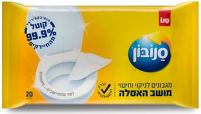 מבית "סנו" הם מגבוני "סנובון" לניקוי וחיטוי מושב האסלה באריזת TO GO. מגבוני "סנובון" הינם אנטיבקטריאלים ומצטיינים בכושר חיטוי של 99.9% מהחיידקים (בהשוואה למגבונים רגילים שאינם מחטאים). המגבונים לניקוי וחיטוי מושב האסלה נבדקו דרמטולוגית ומכילים אלכוהול לייבוש מהיר של האסלה. השימוש בהם בהחלט מומלץ, בהיבט היומיומי, לשמירה על היגיינה במשרד, בטיולים, בבית הספר ובמקומות ציבוריים ובטח תהיה להם שימושיות רבה באירוח החגים, לחיטוי בבית אחר ילדים ה"מפספסים" את מושב האסלה.