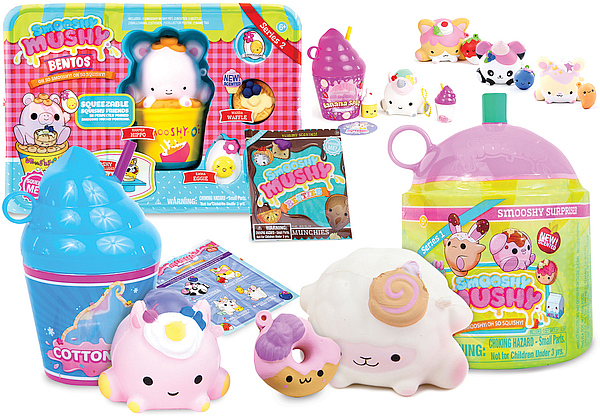 1) "סמושי מושי" – "Smooshy Mushy", מבית "Redwood" האמריקאי, הן דמויות רכות שניתן למעוך אותן וללחוץ עליהן, וכשעוזבים – הן חוזרות מיד לצורתן המקורית, באופן מהפנט. זהו אחד ממותגי האיסוף הנמכרים ביותר בעולם שהפך במהירות שיא ללהיט בארצות הברית, אסיה ואירופה ועכשיו מגיע לראשונה לישראל. המותג מציע ליין של דמויות רכות ריחניות ומבושמות. במגוון אוספים של חיות מחמד שונות, לפי נושאים, פריטי מזון ואביזרים עבורן.
