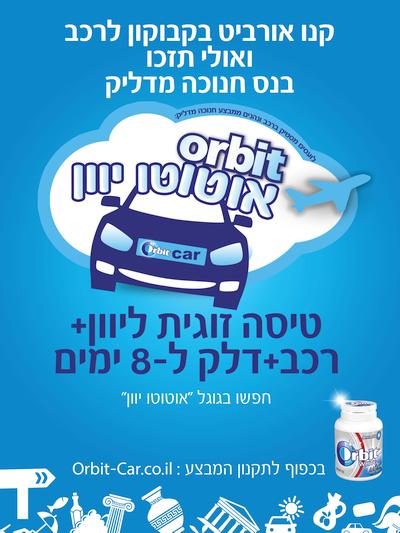 ישראל" החליטה לעודד גם את הנהגים הישראלים ללעיסת "אורביט" שלה בזמן הנהיגה והכריזה על פעילות למותג "אורביט" לקראת החנוכה – "אוטוטו יוון": זכייה בחופשה זוגית של 8 ימים ביוון, כולל הטיסה ועם רכב צמוד!