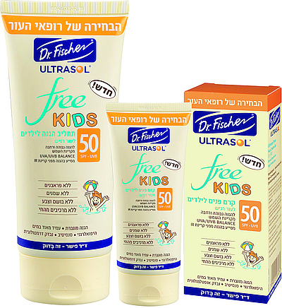 2) אולטרסול Free Kids לעור רגיש לילדים: הרחבה של סדרת "אולטרסול "Free עם סדרת תכשירי הגנה המיועדת לילדים בעלי עור רגיש – "אולטרסול Free Kids". המוצרים בסדרה זו ללא פראבנים, ללא שמנים, ללא בושם וצבע וללא רכיבים מן החי. תכשירי הסדרה מכילים קומפלקס אנטי- אוקסידנטים, המותאם במיוחד לילדים עם ויטמין E ותמצית תה ירוק, המסייעים בהגנה מפני רדיקלים חופשיים ובשמירה על מראה עור בריא גם בטווח הארוך. לתכשירים מרקם קליל והם נספגים במהירות, אינם שמנוניים, היפואלרגניים ועברו בהצלחה את מבדק סנסיטיב, המעיד על התאמתם לעור רגיש.
