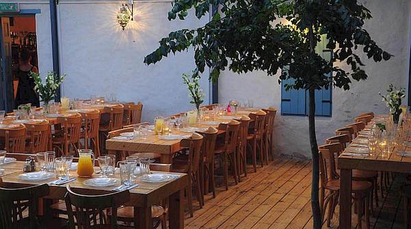 אנחנו התארחנו בחדר הקדמי, שמאוד מצליח להבטיח את הפרטיות והשקט. כשיצאנו בסיום האירוח, גילינו עד כמה החצר מלאה בסועדים, בשקט ובאווירה נינוחה, כשגם מתחם החצר מחולק לאזורי אירוח. בעיקרון, במסעדה שלושה מתחמים אינטימיים: חדר פרטי המשרת עד 30 איש, גינה בה ניתן לארח עד 150 איש או מרפסת מקורה ובה ניתן לארח כ- 60 איש. החלוקה המפרידה הזו מאפשרת לקיים, ואפילו בו-זמנית, מגוון אירועים מצומצמים בעלי אופי שונה, הן אירועים אישיים משפחתיים והן אירועים עסקיים.