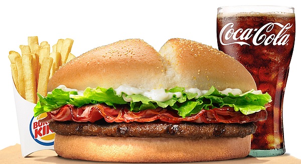 1) בייקון קינג: כריך עם קציצה מ-100% בשר בקר הנצלית על הגריל, עם בייקון הודו כשר, לצד חסה ומיונז בלחמניית תירס. מחיר: 30.90 שקל (מחיר ארוחה עם צ'יפס ושתייה בגודל רגיל: 47.90 שקל).