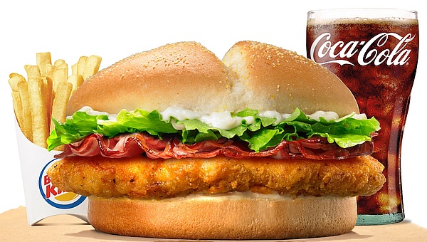3) שניצל בייקון קינג: כריך שניצל עוף קריספי, עם בייקון הודו כשר. הרוטב העשיר מתכתב בטעמו עם רטבי ברביקיו ואלף האיים, עוטף את הקציצה משני צידיה, יחד עם חסה, עגבנייה ובצל טריים ומלפפון חמוץ. המחיר: 36.90 שקל (מחיר ארוחה עם צ'יפס ושתייה בגודל רגיל: 52.90 שקל).