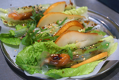 אני, שמאוד אוהבת אגסים, מסתפקת (בכל פעם מחדש) באגס גדול וטעים – מרוצה מהטעם, מתחושת הרוויה ומההרגשה הנוחה שנותרת בפה בלי שיתעורר הצורך לעוד ועוד. שמחתי להכיר אגסים חדשים – אגסים אמריקאים, שמסתבר שהם מאוד פופולריים בארץ. האגסים אוהבים קור וטוב להם לגדול במדינות כמו וושינגטון ואורגון, הממוקמות לרגלי הרי הרוקיס המושלגים. האגסים האמריקאים עסיסיים מאד עם טעם קרמלי מתוק-חמצמץ מרווה ומשביע. השלושה המובילים בארץ הם שניים מזן "אנג'ו" (Anjou – האחד ירוק והשני אדום) ומזן "בוסק" (Bosc – שצבעו חום) והוא שומר על צורתו גם במהלך בישול בטמפרטורות גבוהות ולכן מתאים לצלייה או אפייה.