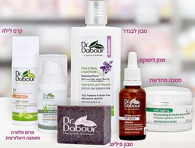 אותנו לבחור במוצרי קוסמטיקה שיותר מתמקדים בהיבט הזה ושמות את מבטחנו בפורמולות שמבוססות על רכיבים טבעיים ובעיקר צמחי מרפא מסורתיים. כאן המקום לספר לכן על ערכת הטיפוח הביתית של מותג הקוסמטיקה הגלילי הישראלי "ד"ר דבור". בערכה 6 פריטים, שמכוונים לטיפול אפקטיבי להחייאת עור הפנים ומחירם המלא ביחד הוא 717 שקל ועכשיו אנחנו יכולות להשיג אותן כערכה במחיר 359 שקל. סכום כזה, עבור 6 פריטים איכותיים, הוא בפרוש מאוד כדאי. ההמלצה היא להשתמש בערכה פעם בשבוע, בשעות הערב. נכיר את המוצרים בערכה: