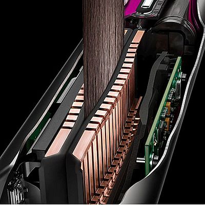 3) החידוש של "דייסון": פיתוח פלטת סגסוגת מנגן ונחושת, הכוללת שילוב מאוזן בקפידה של שש מתכות בכדי לספק גמישות, חוזק והולכה תרמית אופטימלית. כל פלטה מעוצבת ל- 65 מיקרון (רוחב השיער) ועם קצוות טורמלין לייצור תכונות מייננות המסייעות להפחתת סטטיות. בשונה ממחליקים מסורתיים, הפלטות הגמישות הייחודיות של מחליק "Dyson Corrale" תוכננו לקבץ ולאסוף את השיער טוב יותר, ולכן מאפשרות למשתמשים שליטה רבה על תוצאות העיצוב. ככל שהפלטות מותאמות לשיער – הן מפעילות מתח בצורה אחידה יותר ומפסיקות את תופעת הקצוות הקופצים. שליטה זו