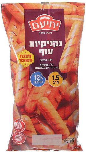החדשות משווקות ב- 3 אריזות שונות: 400 גרם, 1.5 ק"ג ונקניקיות ביס באריזת 380 גרם. הנקניקיות החדשות ללא גלוטן, ללא סוכרים וללא תוספת מונוסודיום גלוטומט ומכילות 12% חלבון. לאחר ההתלהבות הראשונית, מיהרנו לרכוש אריזה של נקנקיות ביס – וההצלחה באירוח שמחה אותנו מאוד.