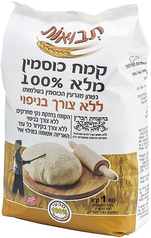 אוהבי הכוסמין ישמחו לדעת כי יש בשוק קמח כוסמין מלא מיוחד, מתוצרת חברת "תבואות", שאינו מצריך ניפוי לפני השימוש בו וכך אנחנו יכולות להכין ביתר נוחות מגוון מאפים ולחמים, עוגות ועוגיות, קישים ופשטידות – טעים ובריא. הקמח של "תבואות" נארז מיד לאחר טחינתו וניפויו באריזה מבוקרת, בטכנולוגיה מיוחדת המונעת התפתחות חרקים ומייתרת את הצורך בניפוי ובאוורור הקמח. לאחר הפתיחה מומלץ לשמור את הקמח בקירור, אך עד לפתיחה – אין צורך בקירור הי האריזה אטומה במילוי אוויר והקמח נקי.