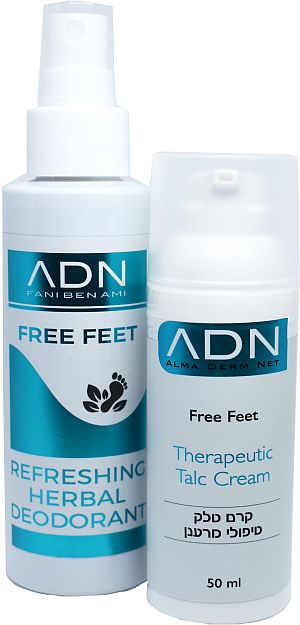 דרך יעילה להתמודד עם בעיית ההזעה בכפות הרגליים, פיתחה פני בן עמי מומחית לבריאות כף הרגל ובעלת מותג הפדיקור המקצועי "ADN" עם סדרת" Free Feet" לרגליים ריחניות וענוגות ובה שני מוצרים לשימוש ביתי: דאודורנט וקרם. אני התנסתי ב"דאודורנט מרענן לכף הרגל והנעל" ("REFRESHING HERBAL DEODORANT") , המיועד להתזה פעם/פעמיים ביום על כף הרגל עצמה וגם אל תוך חלל הנעליים. למרות שלי עצמי אין בעיה של נטייה להזעה משמעותית בכפות הרגליים – אני חייבת להודות על תחושת רעננות וריח נעים מכפות רגלי, לאחר השימוש. ממש דרך טובה להעניק רעננות ליומיום שלנו, גם בכפות הרגליים.