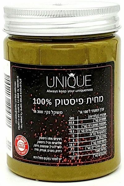 מחית פיסטוק 100%: מכילה אך ורק פיסטוק ירוק איכותי הגדל בגבול טורקיה-סוריה. מתאימה לגלידות, מוס, קצפת, עוגות ועוד. המחיר: 72 ש"ח לצנצנת במשקל 300 גרם.