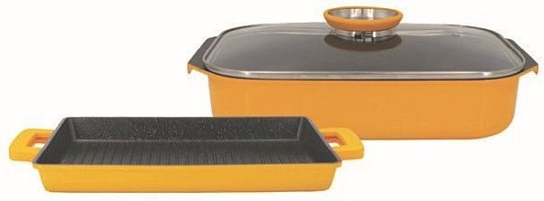 מארז 3 חלקים (יציקה, פלנצ'ה ורוסטר) עם ציפוי Non Stick איכותי בגימור דמוי שיש ב- 249 ₪ במקום 969 ₪.