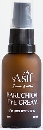 וייחודי הוא קרם העיניים. הרכיבים המרכזיים בפורמולה שלו הם: הבקוצ'יול, שכאמור מתפקד כרטינול ממקור טבעי, מעודד התחדשות העור, עוזר בהבהרתו, נלחם בפצעונים ובעיקר אפקטיבי ביותר ללוחמה בקמטים. לצידו, חומצה היאלורונית חדשנית, פיתוח בלעדי של "אסיף קוסמטיקס" עם שילוב של שלוש מולקולות בגדלים שונים. ביחד עם יוצרים חיבור קולגן בגוף, החלקת קמטים, החדרת לחות לעור והזנת העור . יש גם קפאין אשר ממריץ את זרימת הדם וניקוז פסולת שהצטברה באזור ונוטה לגרום לנפיחויות. יש גם כלורופיל, שהוא המוגלובין הצמחי אשר מסוגל לצרף אטומי חמצן, להתאושש במהירות ולהביא לחידוש ושימור הרקמות בעור וניקוי הרעלים בעור. לתמצית הלקריסיום יש השפעה חיובית על העור והיא תורמת למניעת הזדקנות מואצת של העור, מסייעת להבהיר כתמי עור, משפרת את גוון העור וככלל – מרעננת את עור הפנים.