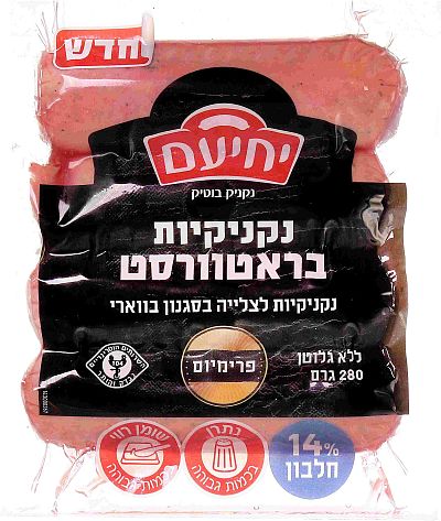 אזכיר כי סדרת נקניקיות הפרימיום של "מעדני יחיעם" מציעה נקניקיות צ'וריסו בסגנון ארגנטינאי בעלות מרקם בשרי וטעם פיקנטי; נקניקיות בסגנון צרפתי בעלות מרקם בשרי וארומה חזקה; ונקניקיות בסגנון אמריקאי, 100% בקר פרמיום על פי מתכון וידע של חברת הבת של מעדני יחיעם בארה"ב, A&H. כל הנקניקיות עשויות מנתחי בקר, הודו ועוף איכותיים, בקוטר רחב במרקם בשרי ובטעם משובח, ללא גלוטן ובעלות רמת חלבון גבוהה (כ-14-16%). הנקניקיות משווקות באריזות של 280 גרם, כ-4 יחידות נקניקיות גדולות באריזה והן חלק מקטגוריית נקניקי הבוטיק של "יחיעם" הכוללת מעדני בשר בסגנון עולמי בהם נקניקי סרוולד, פרשוטו, סלמי צרפתי, סלמי הרץ ועוד.