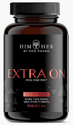 'אקסטרא און' (EXTRA ON): פורמולה טבעית המעניקה פתרון יעיל לשיפור זרימת דם ומסייעת לחיזוק הזקפה. הודות לרכיבים פעילים כמו ארגינין ואבץ התורמים לשיפור זרימת הדם, להגברת החיוניות הגברית, הגברת כוח הגברא
