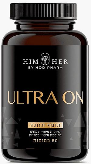 'אולטרה און' (ULTRA ON) : פורמולה טבעית חדשנית המבוססת על שילוב עוצמתי של מיצוי פטריות וצמחי מרפא, התורמת להגברת החשק המיני ומשפרת את הביצועים ואת איכות הזקפה. בנוסף, הפורמולה מסייעת להעלאת האנרגיה המינית, משפרת את זרימת הדם ואת חוזק הזקפה, תורמת להגברת עוררות, עונג והנאה גם לגבר וגם לאישה.