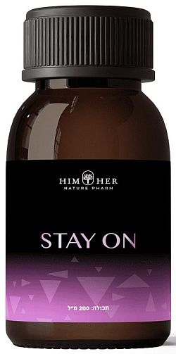 'סטיי און' (STAY ON): פורמולה טבעית המסייעת במצבים של שפיכה מוקדמת לשיפור הביצועים ולהארכת זמן האקט. בנוסף, הפורמולה מסייעת בהורדת הסטרס וחרדת הביצוע בזמן האקט, מחזקת את כושר העמידות ועוזרת להמשיך זמן רב יותר. התוצאה המתקבלת היא הנאה מוגברת, עונג ושיפור הביצועים.